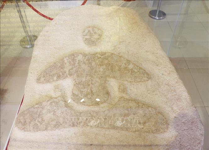 Mặt trên của Phù điêu Phật Linh Sơn Bắc, niên đại thế kỷ thứ III - IV trước Công Nguyên - bảo vật quốc gia hiện được lưu giữ tại Ban Quản lý di tích Văn hóa Óc Eo, tỉnh An Giang.