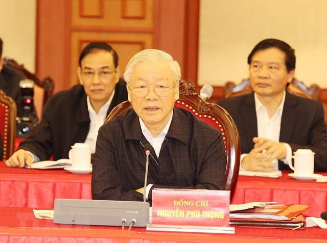 Tổng Bí thư Nguyễn Phú Trọng chủ trì cuộc họp Bộ Chính trị về tổng kết 10 năm thực hiện Nghị quyết số 11-NQ/TW của Bộ Chính trị khóa XI về phương hướng, nhiệm vụ phát triển Thủ đô Hà Nội giai đoạn 2011-2020. Ảnh: TTXVN