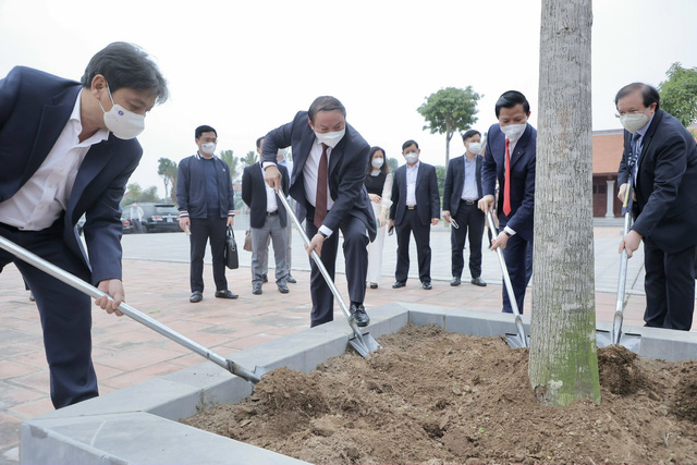 Bộ trưởng Nguyễn Văn Hùng trồng cây lưu niệm tại Trung tâm bảo tồn tranh Dân gian Đông Hồ.