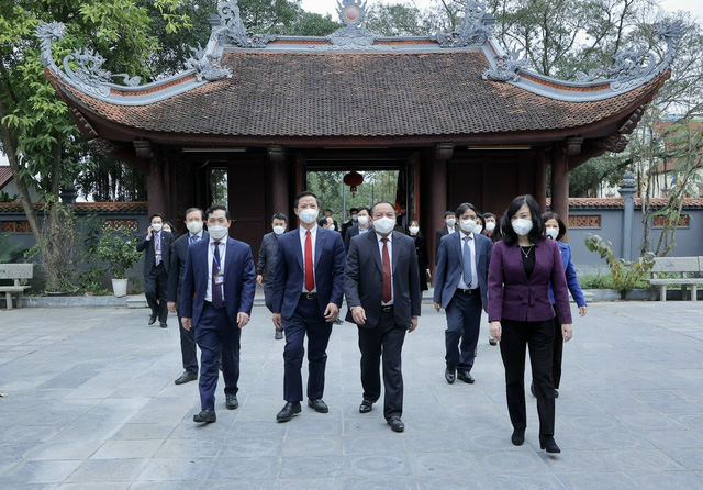 Tiếp đó, Bộ trưởng cũng đã đến dâng hương tại Đền Vua Bà (Làng Diềm - phường Hòa Long - thành phố Bắc Ninh) và tham quan Nhà chứa Quan họ.