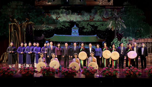 Trước khi làm việc với Lãnh đạo tỉnh Bắc Ninh, Bộ trưởng Nguyễn Văn Hùng cùng đoàn công tác đã đến tham gia, nghe chương trình nghệ thuật tại Nhà hát Dân ca Quan họ Bắc Ninh.