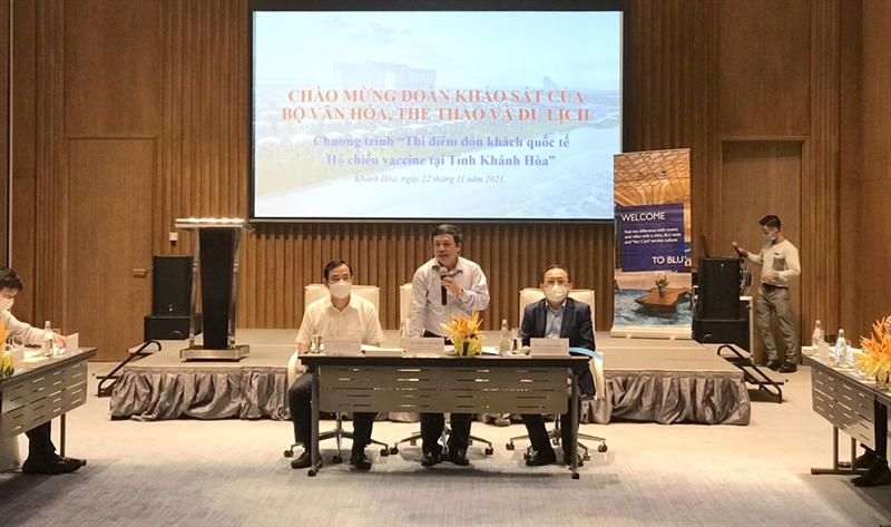 Cũng tại buổi làm việc, tỉnh Khánh Hòa kiến nghị Bộ Văn hóa, Thể thao và Du lịch các vấn đề về: Tham mưu, trình Thủ tướng Chính phủ việc miễn thị thực nhập cảnh để hỗ trợ kích cầu du lịch. Quan tâm, hỗ trợ tỉnh tổ chức các hoạt động truyền thông, xúc tiến, quảng bá trong giai đoạn thí điểm đón khách du lịch quốc tế. Làm việc, thống nhất với Bộ Y tế hướng dẫn cụ thể các biện pháp chuyên môn để giám sát, xét nghiệm, cách ly, điều trị khi có trường hợp khách du lịch quốc tế mắc COVID-19; cấp giấy xác nhận cho du khách sau khi hoàn thành chương trình du lịch để khách xuất trình cho địa phương nơi đến (trong trường hợp đi đến các địa phương khác thăm thân)…