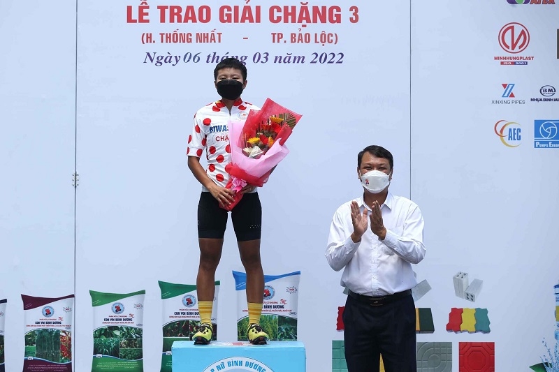 Áo chấm đỏ thuộc về người có thành tích đổ đèo tốt thứ nhì Nguyễn Thị Kim Cương