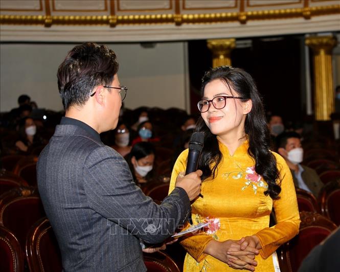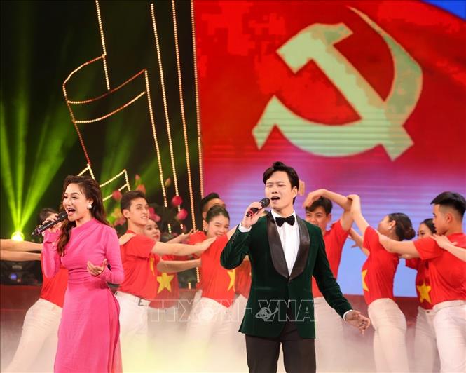 Ca khúc "Tuổi xuân dâng Đảng" với sự thể hiện của Thu Thủy và Minh Quân - Ảnh: TTXVN