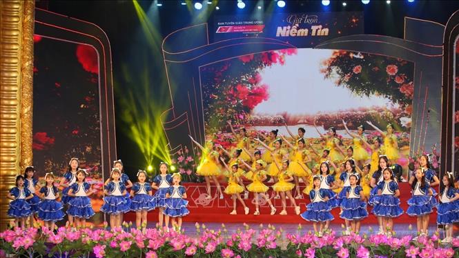 Ca khúc "Em là mầm non của Đảng" với sự thể hiện của nhóm thiếu nhi - Ảnh: TTXVN