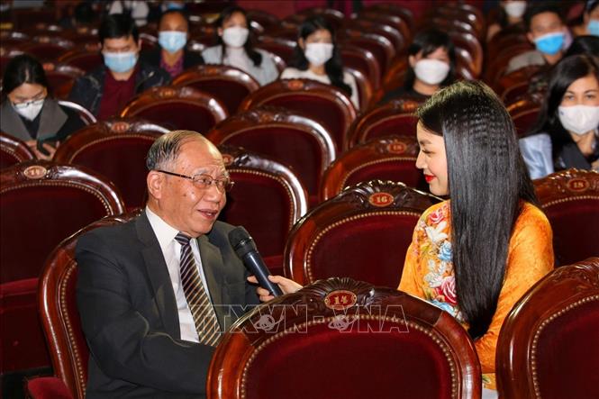 Giao lưu với GS. Hoàng Chí Bảo - Ảnh: TTXVN