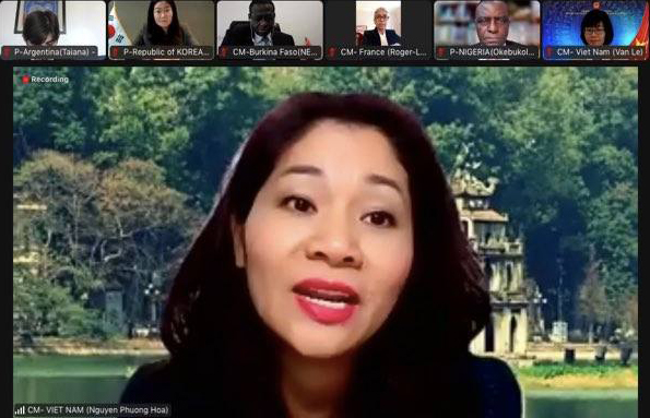 Phát biểu tại Kỳ họp, bà Nguyễn Phương Hòa cho biết, ngay sau khi Việt Nam trúng cử thành viên UBLCP của Công ước, Bộ Văn hoá, Thể thao và Du lịch với vai trò điều phối đã ban hành Kế hoạch các hoạt động triển khai trong nhiệm kỳ 2021-2025 trong đó đề ra cam kết mạnh mẽ trong việc thực thi Công ước ở cấp quốc gia, khu vực và quốc tế. Bà Nguyễn Phương Hòa cũng chia sẻ, thông tin về Hội nghị Văn hóa toàn quốc của Việt Nam được tổ chức tháng 11/2021 vừa qua đã đưa ra những định hướng chiến lược nhằm chấn hưng và phát triển nền văn hóa của Việt Nam hướng tới việc xây dựng quốc gia thịnh vượng và hạnh phúc, lấy con người làm trung tâm của sự phát triển. Cũng trong thời gian này, Thủ tướng Chính phủ Việt Nam đã ban hành Chiến lược phát triển văn hoá đến năm 2030 với trọng tâm xây dựng và phát triển văn hóa và con người Việt Nam toàn diện, thu hẹp khoảng cách hưởng thụ văn hoá giữa nông thôn và thành thị, có chính sách ưu tiên và đối xử ưu đãi đối với dân tộc thiểu số và các nhóm người dễ bị tổn thương. Chiến lược xác định tiếp tục đầu tư phát triển các ngành công nghiệp văn hóa sáng tạo và chuyển đổi số, góp phần thực thi hiệu quả việc bảo vệ và phát huy sự đa dạng của các biểu đạt văn hóa. Theo đó, nhiều hoạt động về chuyển đổi số đã được thực hiện tích cực thông qua các chương trình, dự án về số hoá thư viện, di sản văn hoá, bảo tàng, nhà hát trực tuyến… Ngoài ra, năm 2022, Bộ Văn hoá, Thể thao và Du lịch sẽ hoàn thiện và trình Chính phủ Đề án Phát triển mạng lưới các thành phố sáng tạo Việt Nam tham gia vào Mạng lưới các thành phố sáng tạo của UNESCO nhằm tăng cường nhận thức và đặt văn hóa và sáng tạo vào trung tâm của phát triển bền vững ở các địa phương.
