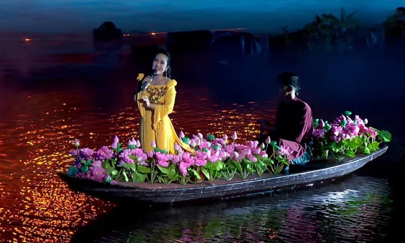 Nghệ sĩ ưu tú Vân Khánh thể hiện tác phẩm “Tiếng hát trên dòng sông” của nhạc sĩ Nguyễn Huy Hùng.