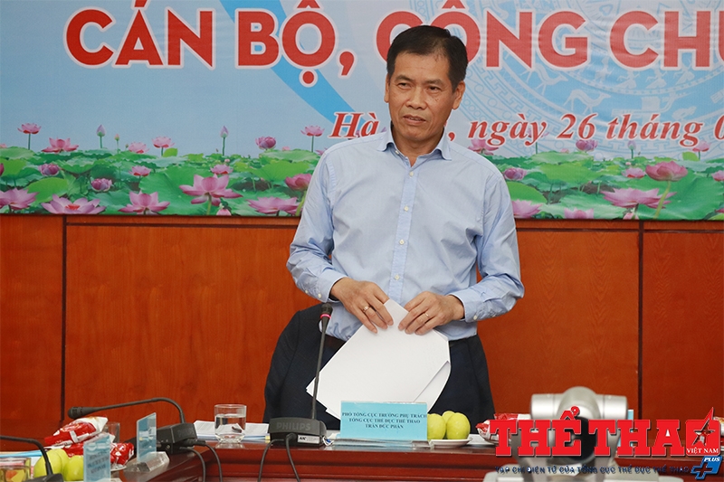 Ông Trần Đức Phấn - Phó Tổng cục trưởng Phụ trách Tổng cục Thể dục thể thao - phát biểu tại Hội nghị. Ảnh: Quý Lượng
