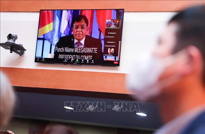 Theo dõi phiên họp tại đầu cầu Bộ Văn hóa, Thể thao và Du lịch tại Hà Nội - Ảnh: TTXVN